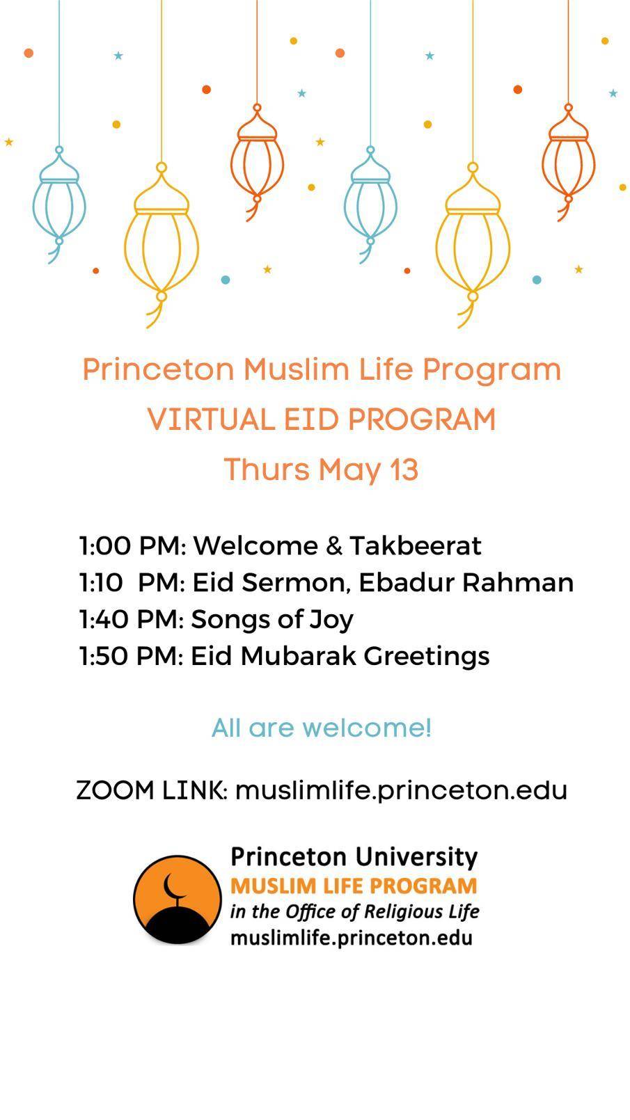 Celebrate Eid ul-Fitr with Princeton Muslim Life Program! All are welcome to join our virtual program beginning at 1 pm: