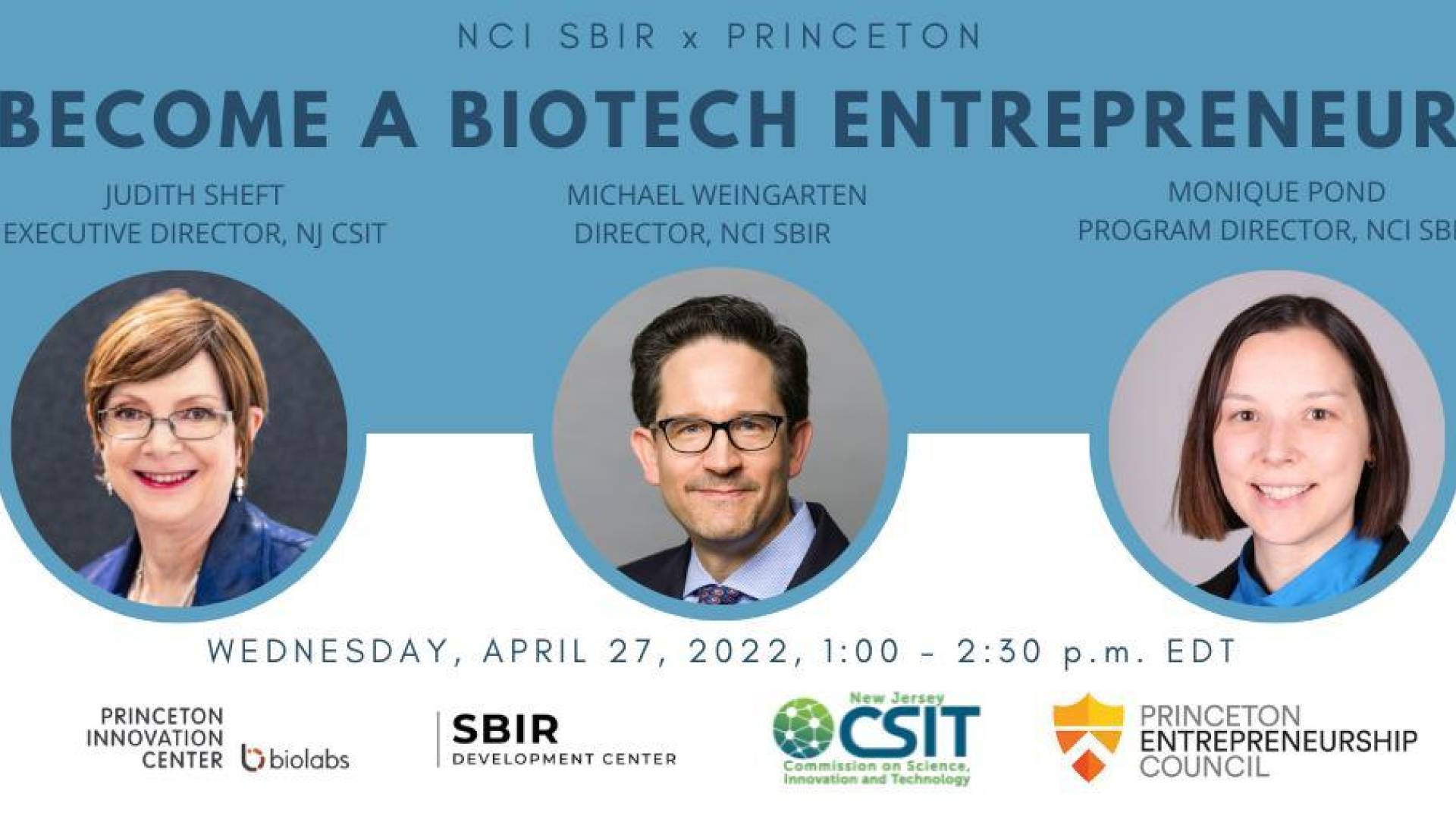 NCI SBIR Director Michael Weingarten and Program Director Monique Pond will discuss fundamental information on NCI SBIR/STTR funding, as well as commercialization resources and application tips. Judith Sheft, executive director of the New Jersey Commission on Science, Innovation and Technology, will moderate the event.
