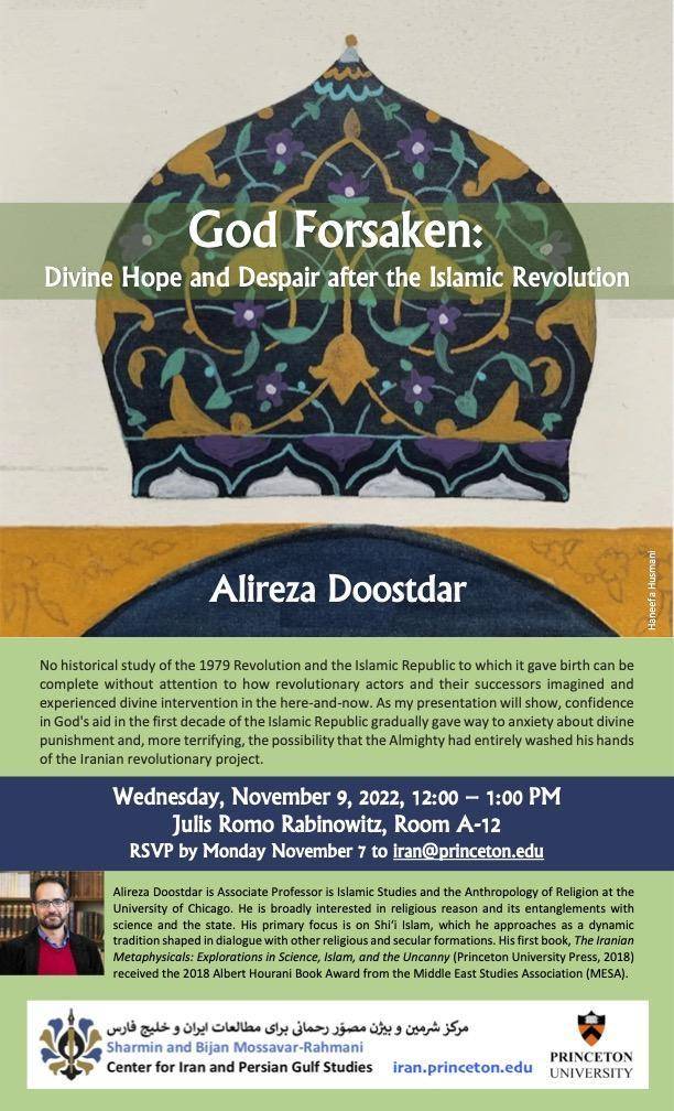 Note from the organizer:God Forsaken: Divine Hope and Despair after the Islamic Revolution