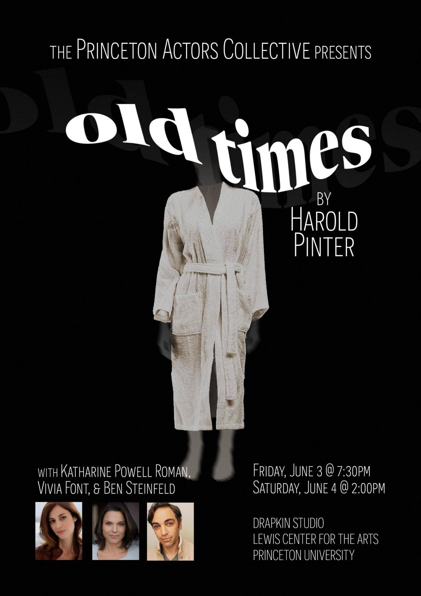 Princeton-based actors & Program in Theater guest artists Katharine Powell, Vivia Font, and Ben Steinfeld share an actor-led investigation of "Old Times," a 1971 masterpiece by one of the most influential playwrights of the 20th century. Free and open to the public; tickets required.
