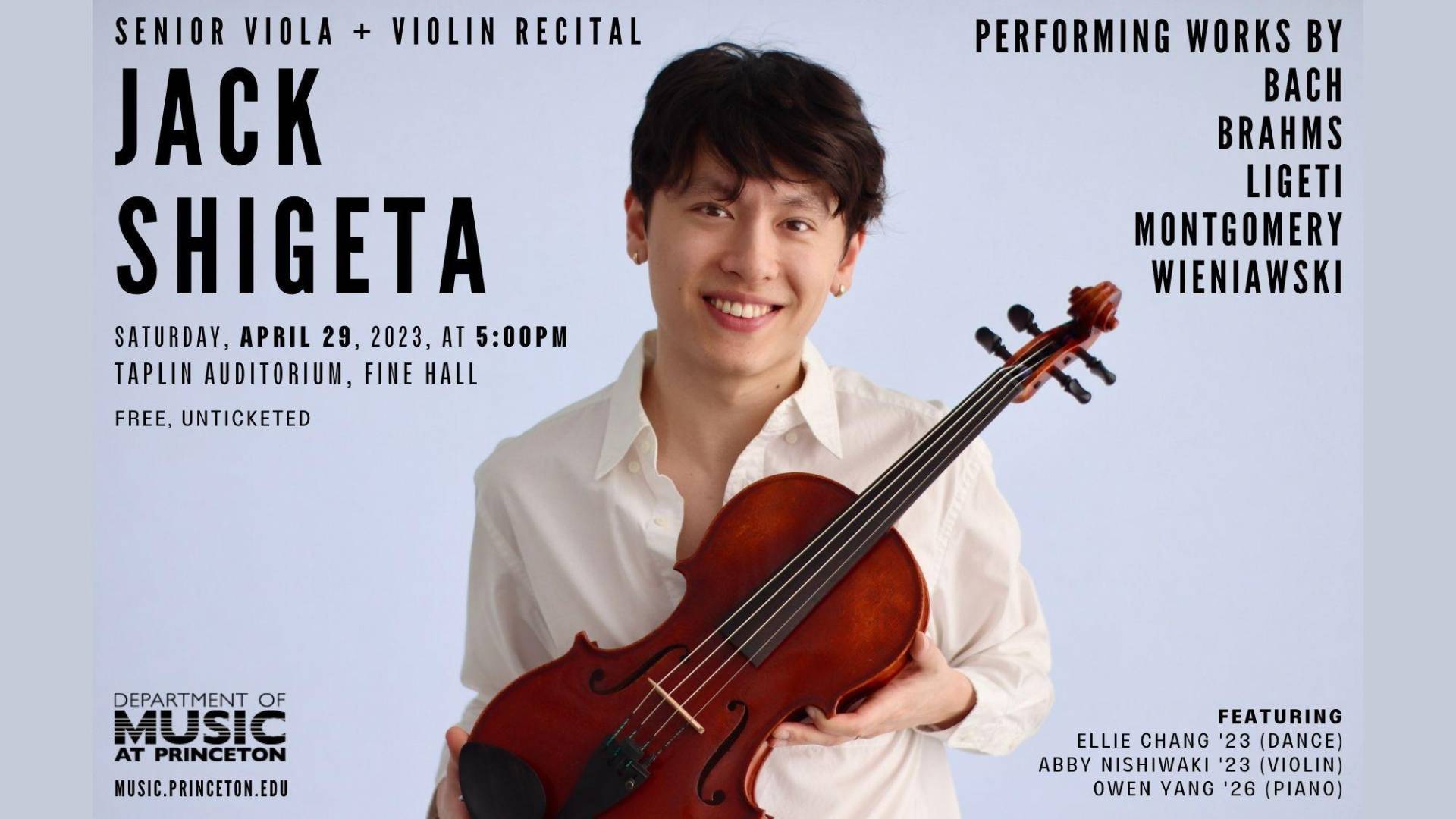 Jack Shigeta ’23 (Viola & Violin) performs a senior recital.