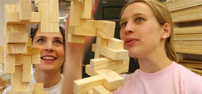 At a table covered with sculpture of various shapes, colors and materials, four undergraduate students made final modifications to their artistic creations. A mobile of interconnected wooden pieces dangled above like a 3-D jigsaw puzzle. Its creator, senior Hilary Zaic, carefully moved a small cube from one ledge to another. “I call it ‘Playtime,’” she said, “because it reminds me of building with blocks as a child.”
