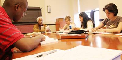 The students are enrolled in the freshman seminar, “Holy Ordinary: Religious Dimensions in Contemporary Fiction,” taught by Albert Raboteau, the Henry W. Putnam Professor of Religion. The course focuses on texts that deal with moral and religious values, which Raboteau hopes will resonate with students “concretely and personally.”