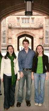 The Princeton Katzenjammers will perform selections from their diverse repertoire during "KatzenJam 2006," which is scheduled for 7:30 p.m. Saturday, April 8, in Richardson Auditorium. Members of the a cappella group include, from left, junior Amy Coenen, senior Jackson Murley and junior Pam Testani.
