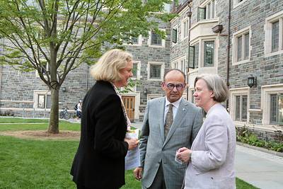 "We are gathered in the center of a college complex that combines tradition and innovation," said President Shirley M. Tilghman, referring to the marriage of architectural details that reflect the Collegiate Gothic style with the state-of-the-art facilities inside. "(This) is the largest, most ambitious single building project in the history of Princeton University. It took 77 stone masons and 30 laborers a full year to place and shape the more than 150,000 individual stones that make up these buildings."
