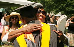 Alan Johnson, who was awarded a master of engineering degree in electrical engineering, was greeted by loved ones following the ceremony. (Photo: John Jameson)
