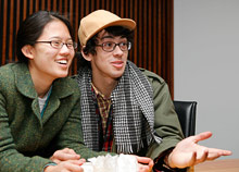 Seniors Candice Chow and Julio May-Gamboa, eager to witness the first African American becoming the U.S. president, watched the inauguration from a simulcast room in Robertson Hall. (Photo: Brian Wilson)