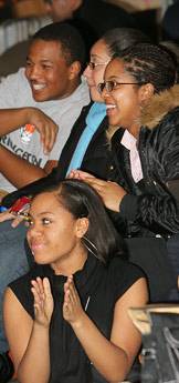 The audience, a mix of members of the community and University students, faculty and staff, participated fully in the inauguration as if they were in the crowd on the National Mall, standing when Obama first arrived on the Capitol steps and cheering after certain lines of his speech.