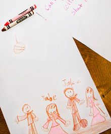 At the playwriting class, students and teachers collaborated while sitting cross-legged in a circle in a small room in Murray-Dodge Hall, discussing ideas for where the play would take place and the conflicts that would cause the scene's dramatic action. After the group selected a disco as the setting, the children scattered to different corners of the room with crayons and paper, scribbling descriptions of the character they wanted to play.