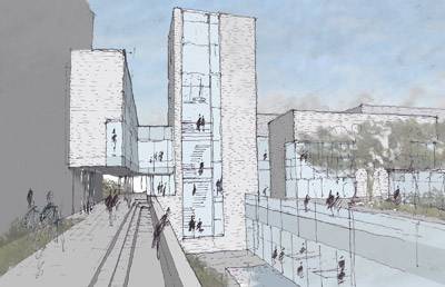 Paying particular attention to the ground itself results in a design for buildings that are not imposing in height, Williams said. The buildings will have only three floors, so visitors will either stay on the "campus level," go down to the "garden level" or go up one flight to the second level, which will be even with the main floor of the EQuad. "We wanted to emphasize the plane of the ground, to be as close as possible to that primary surface," Williams said.