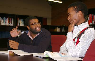 Ettie Philitas, left, a member of the class of 2007, helps a student prepare for A-level exams at African Leadership Academy in Johannesburg, South Africa.