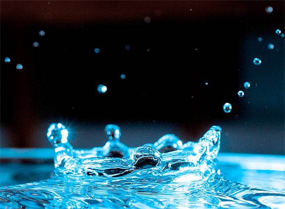 A brief examination of surface tension effects in water led to this photo, "Surface Tension of Water" by sophomore David Heinz. The image was captured just a moment too late, revealing a "crown" of water, rather than the surface tension interaction between the drop and the pool.