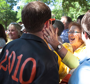Family members greet a soon-to-be graduate during the class procession into the ceremony. (Photo: Brian Wilson)