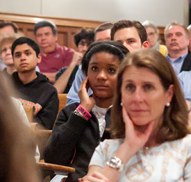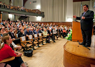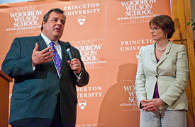 The address, which was sponsored by Princeton's Woodrow Wilson School of Public and International Affairs and Center for Economic Policy Studies, drew an audience of Princeton students, scholars and other campus community members, as well as members of the public. In introducing Christie, Princeton President Shirley M. Tilghman cited his swift rise into the national political limelight since his inauguration in January 2010 as the 55th governor of New Jersey.