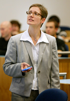 To make the course more engaging and to focus students on the thought processes of ethical decision-making, Gmachl peppers her presentations with hypothetical scenarios and presents the students with multiple-choice responses. In one exercise, students "voted" with handheld devices and the aggregated results were instantly projected on a screen. They were given a scenario involving an adviser who kept asking a student to redo experiments when the results did not match the hypothesis. Gmachl noted that the students' reactions sometimes shifted as new information was added to the hypothetical scenario and as students heard each other's views.