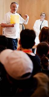 Shotaro "Macky" Makisumi '12 (top) displayed his cube skills and taught tips during the Rubik's Cube Challenge.