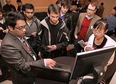 Following the presentations, the teams mingled with fellow competitors and audience members during a reception while waiting for the judges' decisions.
