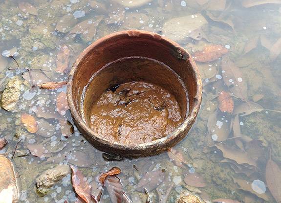 A well pipe emerges from the ground in the Allegheny National Forest in northwestern Pennsylvania. Researchers covered pipes from 19 wells with instruments to measuring gases emitted by the well. (Photo courtesy of Mary Kang, Department of Civil and Environmental Engineering)