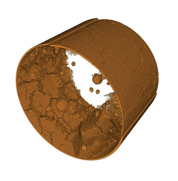 An X-ray image of a cement sample shows small cracks that formed as it dried. Research funded by the Princeton E-ffiliates Partnership Fund has revealed ways to reduce this cracking in new generations of cement that are less environmentally damaging. (Image courtesy of Claire White, Department of Civil and Environmental Engineering and the Andlinger Center for Energy and the Environment)
