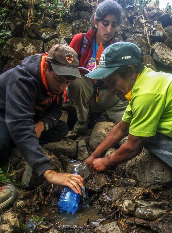 Kasturi Shah, center, participated in Engineers Without Borders, which receives support through the Keller Center. As part of the program, Shah traveled to Pitajaya, Peru, to help install a system to bring clean water to the remote town. (Photo courtesy of Kasturi Shah, Class of 2016)
