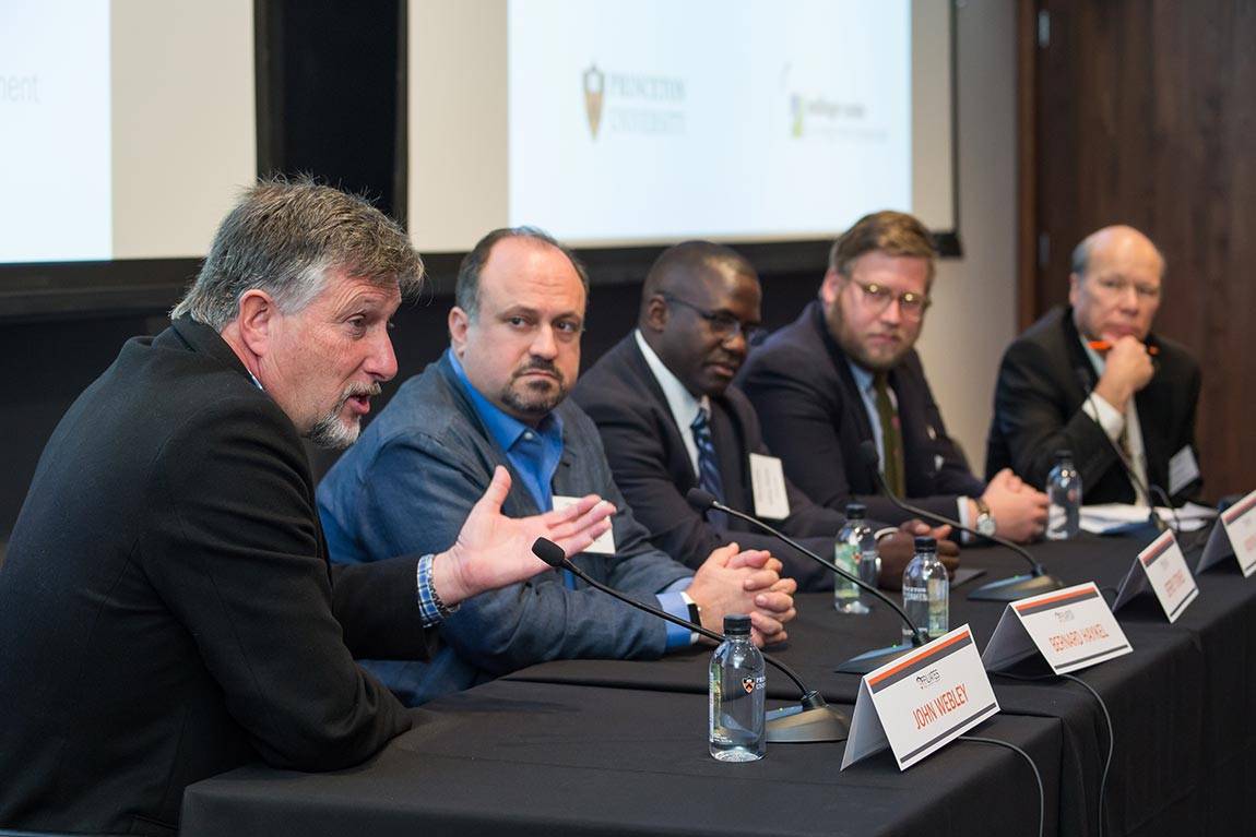 Panelists discussed the connections between energy and water. The panelists included, from left to right, John Webley, chief executive officer of Trevi Systems, Inc.; Bernard Haykel, a Princeton professor of Near Eastern studies and director of the Institute for the Transregional Study of the Contemporary Middle East, North Africa and Central Asia; Jeffrey Stokes, senior director of power generation at PSEG Fossil; Addison Killean Stark, Advanced Research Projects Agency-Energy Fellow and program director for the U.S. Department of Energy; and Eric Larson, moderator and senior research engineer in the Energy Systems Analysis Group based at the Andlinger Center for Energy and the Environment.