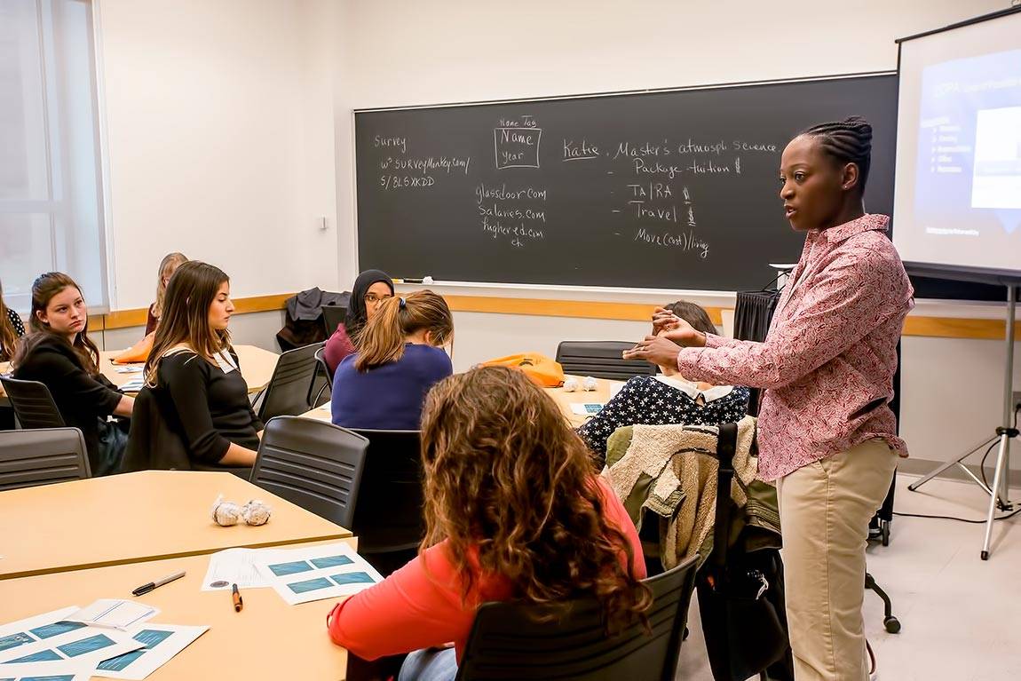 Josee Vedrine-Pauléus, a professor in the Department of Physics and Electronics at the University of Puerto Rico-Humacao campus, gives a workshop on negotiation.