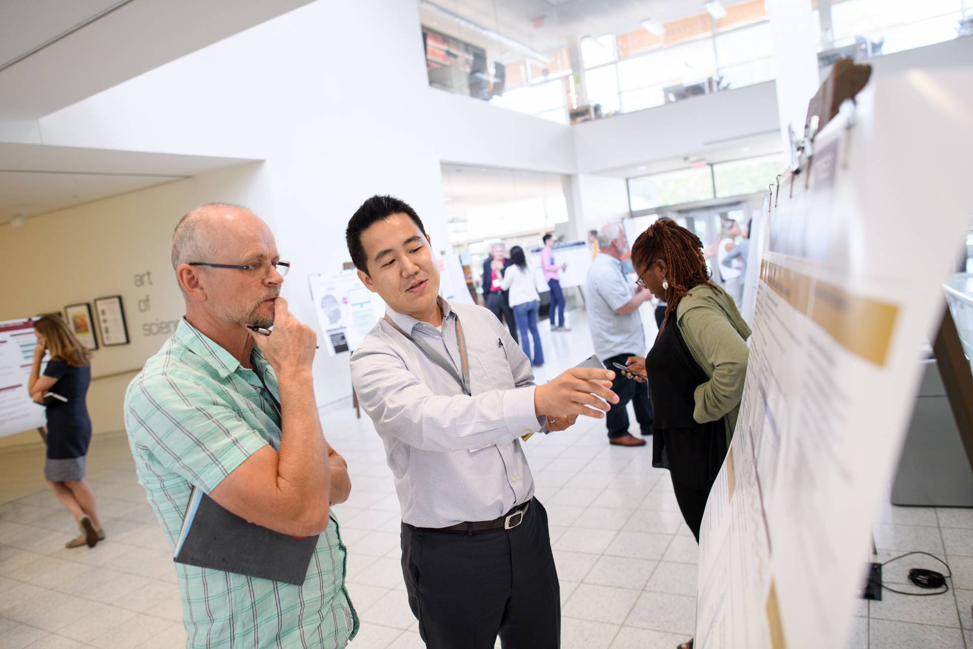 The conference explored ways that the study of cultures could help researchers better understand new business development. The event was organized by the Keller Center, the Ewing Marion Kauffman Foundation and the Department of Anthropology. Shown above, from left, are conference attendees Per Davidsson, a professor at Queensland University of Technology in Australia, and Suntae Kim, an assistant professor at Boston College. Behind them is Marlo Rencher, a vice president at Cleary University.