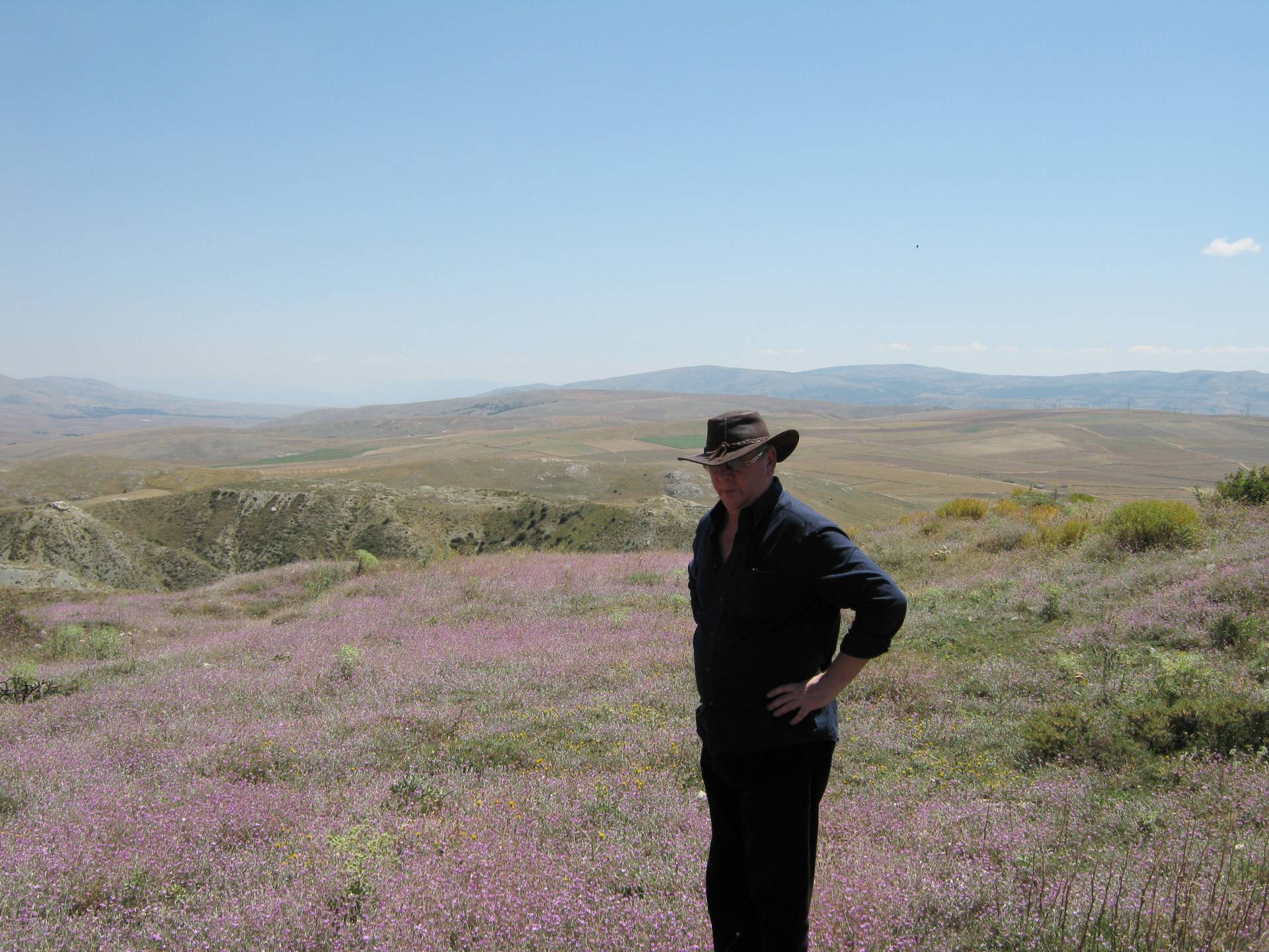 Haldon, project director of the Avkat Archaeological Project in Turkey and director of CCHRI, stands in the remains of a Byzantine citadel on a Turkish hillside.