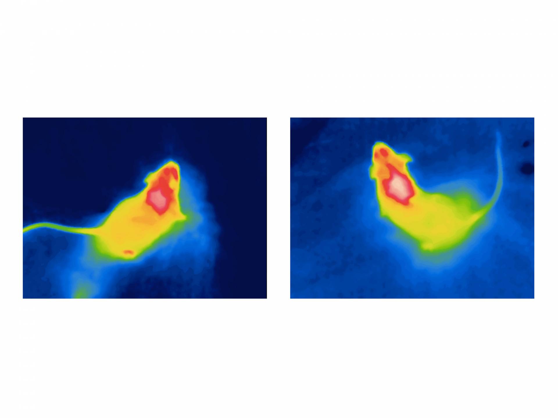 Princeton researchers found that brain cells known to regulate hunger also control energy expenditure. As our body weight depends both on the calories we consume and the energy we burn, their findings could lead to a new type of weight-loss medication that acts on both sides of the energy equation. This image from a heat-sensitive camera shows the temperature of brown fat, a special form of fat tissue that is burned to produce heat directly in both mice and humans. The researchers turned temperature-sensitive neurons on and off, and they discovered that activating the neurons cooled the animals’ brown fat and lowered their core body temperature, while suppressing the neurons amped up heat production — and made the animals less hungry.