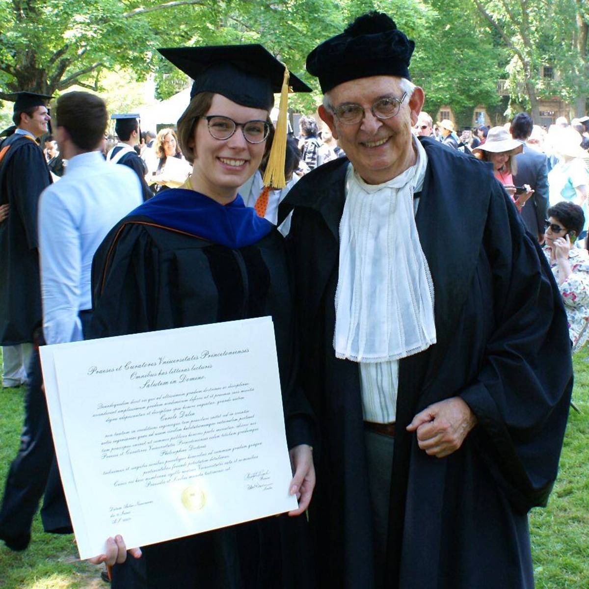 Carole Dalin (shown with Rodríguez-Iturbe after receiving her Ph.D. in 2014) worked on a network analysis of the global “virtual water trade.”