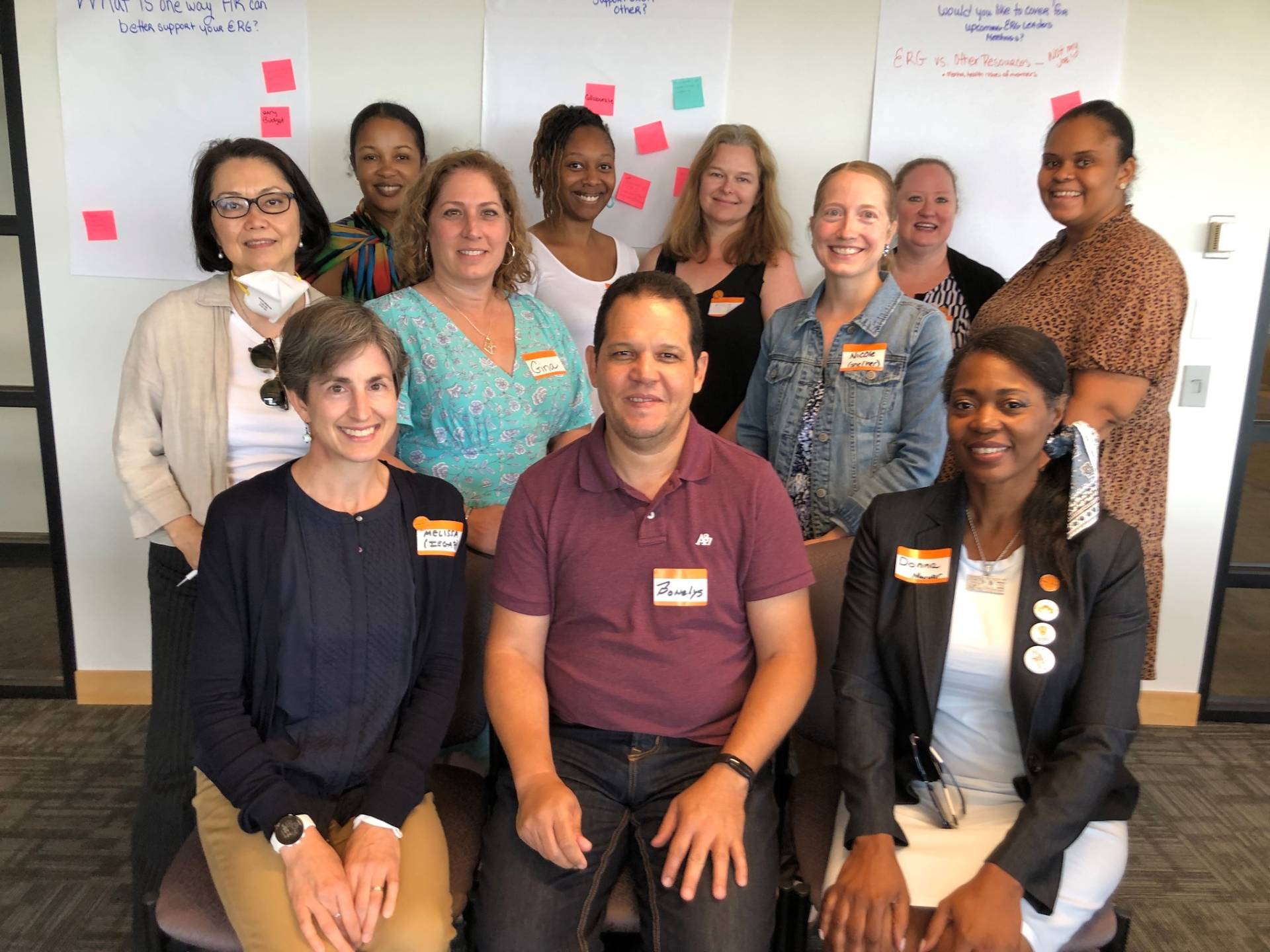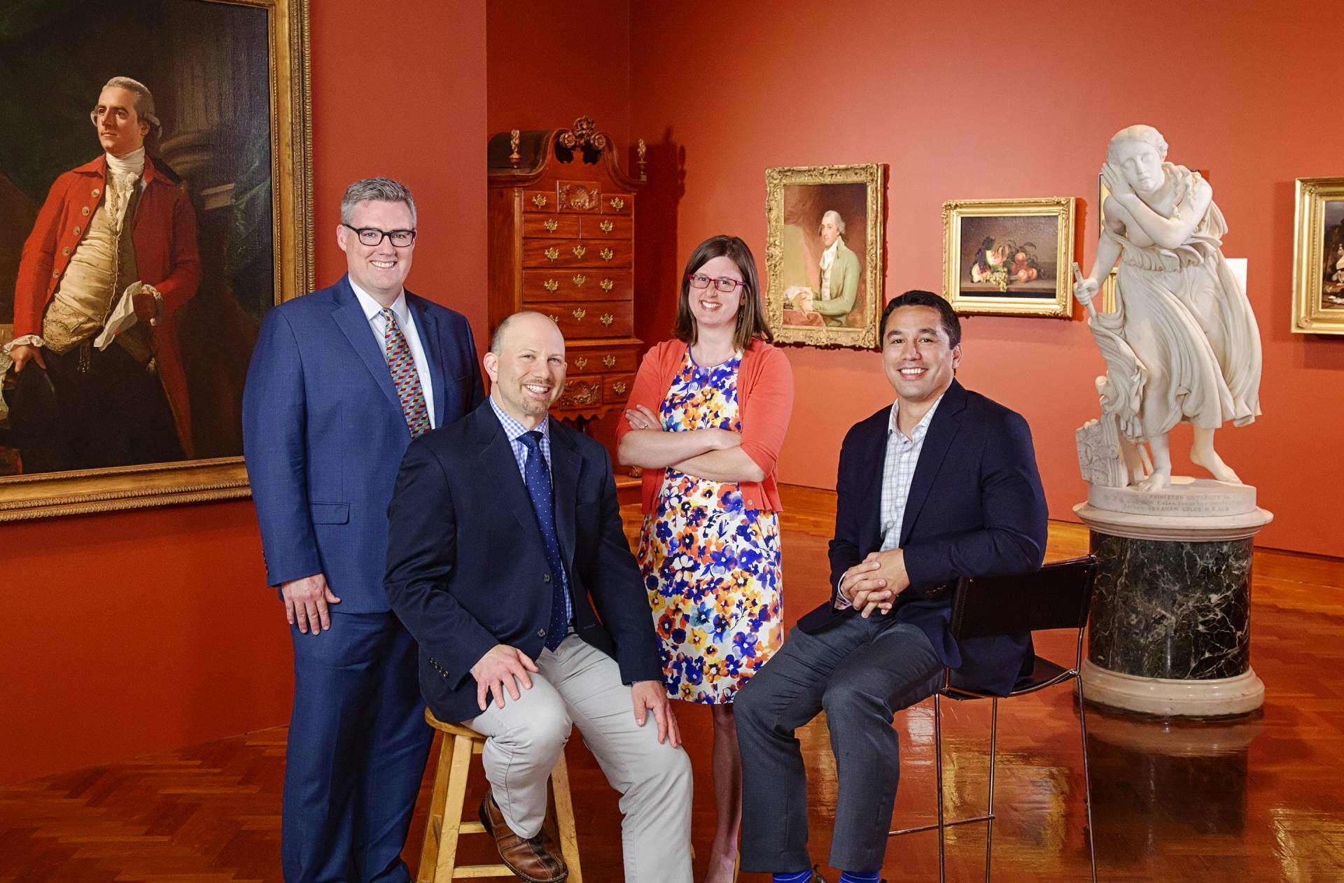 Standing left to right are Ron McCoy, Jess Ward, Traci Miller, Christopher Eisgruber, Anna Meerson, Kamara Blackman, and Damon Schunk.