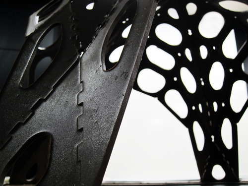 The result of this curved shape is minimal stresses in a material whose strength-to-weight ratio is 24 times less than that of concrete. This proof-of-concept vividly demonstrates the unprecedented potential of "intelligent design" and new workflow processes to design and build structures informed by material constraints.