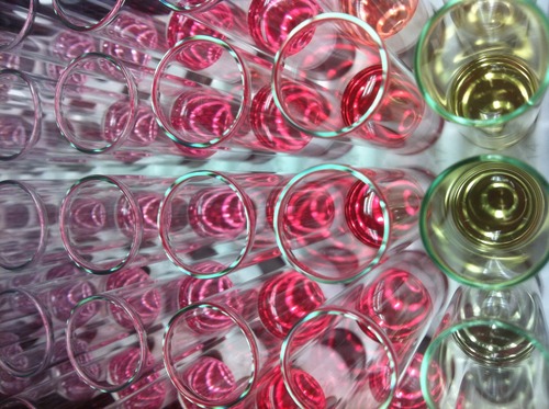 When attempting to synthesize a desired chemical, some starting materials may not react as anticipated or may produce undesired byproducts. Hence, chemists must typically perform separations to isolate the desired product from other chemicals in the reaction mixture. If the desired products and the undesirable byproducts have similar solubilities, it may be necessary to perform a chromatographic separation. In such a case, the reaction solution is passed through a packed column of small silica beads. Each component of the solution will move at a different speed through the column, isolating the desired product. If the components in the mixture absorb at different wavelengths in the visible light spectrum, chromatographic separation can produce colorful gradients, as seen in the image. Here we were synthesizing a semiconducting molecule called hexabenzocoronene for use in organic electronic applications.