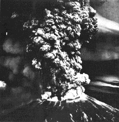 Air motion is invariably turbulent. Consider a smokestack (which to a first approximation is mostly air). If its diameter is say 3 m, then V must be less than 6.6 mm/s (0.015 mph) for it to be laminar! There is no such thing as a laminar smokestack. Clouds too are usually turbulent. Here we determine the Reynolds number using an approximate characteristic dimension of the cloud such as its height or width. Assuming the cloud dimension is say 500 m, and its characteristic internal motion is say 5 m/s, then taking the kinematic viscosity to be 10^{-5} m^2/s (it is approximately the same for water vapor as it is for air), the Re = (500 x 5)/10^{-5} = 2.5 x 10^8. A high value indeed. No wonder cumulus clouds always have a random, puffy looking turbulent structure (see also the plume generated by Mt. St. Helens in the picture above).