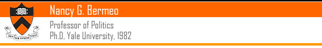 Nancy Bermeo works on the causes and consequences of regime change, with particular attention to Western Europe and Latin America. Her recent publications include Who Governs Southern Europe? (ed.) Unemployment in the New Europe (ed.), Unemployment in Southern Europe (ed.), Liberalization and Democratization (ed.), Civil Society Before Democracy (ed. with Philip Nord) and Federalism and Territorial Cleavages (ed. with Ugo Amoretti).