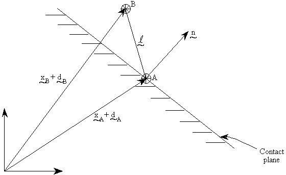 The quantity d is a measure of the distance between X(B) + D(B) and the contact plane. When contact is noted, a contact element stiffness and out-of-balance force are added to the global equations. These arrays are defined as follows: