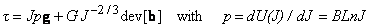 The following hyperelastic stored energy function with uncoupled volumetric and deviatoric parts is employed:
