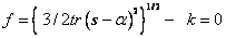 The yield function in this case is of the Von Mises type with: