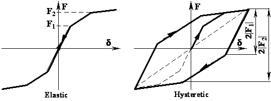The Stress_1D model can only be used with structural beam and truss elements. It allows the axial-stress vs axial-strain to be described as linear or nonlinear (see Fig. 10.12). If nonlinear, a piecewise linear behavior is assumed and the behavior may be prescribed as either elastic or hysteretic.