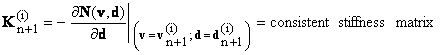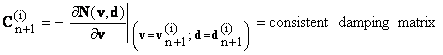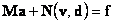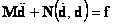 (t) = vector of nodal velocities, d(t) = vector of nodal displacements; M = global mass matrix; N = global vector-valued function of the displacement d