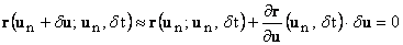 In order to increase the robustness and/or efficiency of the Newton-like algorithm, a control over the step length p may be used during the iterations. Several techniques for unconstrained optimization have been studied in recent years; see Ref.[6,11] for an overview of these techniques. The idea is to determine the step length sp by performing the minimization of a univariate function representing a measure of the residual. The function is defined as follows. Let