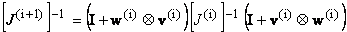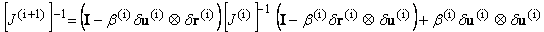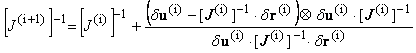 Implementation Issues: The use of inverse matrices in the update formula (Eqs. 16, 17, and 21) is purely formal. The actual computation of the inverse is never carried out. Only means of replicating its action upon any vector is required. With J(i) unaltered, the only additional storage required consists of two sets of update vectors (e.g. {v(i) , w(i)}i=1, k for the Strang_BFGS). Typically, a strategy is adopted which limits the maximum number of