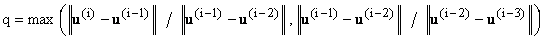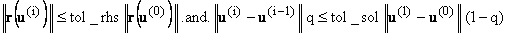 where r(u(i)) = f - n(u(i)) = residual, u(i) = solution at iteration i, || . || = denotes the Euclidean norm and q is a contraction factor: