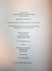 Professor Grafton had more to say on the transformation of reading, writing, and information-storage in the digital age and happily, his words caught the attention of the guys at Crumpled Press. Together they have published an expanded version of the essay, now entitled Codex in Crisis.