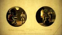 However, it was Orme who made the genre popular in the early nineteenth century through his bilingual manual, An Essay on Transparent Prints and on Transparencies in General (1807) Graphic Arts Collection (GA) Oversize Rowlandson 8415q. The effect was created by taking a normal etching or engraving, painting large areas of color on back of the print and then, adding varnish to specific areas make the paper translucent when held up to a light. Scenes often included fire light, moon light, and other glowing illusions. Orme’s instructions suggest that transparent prints could be substituted for stained glass, in lanterns, lampshades, and fire screens.