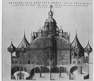 Tycho Brahe built Uraniborg on the island of Hveen in the Danish sound. The island was probably given to Brahe as a fief. The castle was built between 1576 and 1580 but destroyed soon after Brahe's evacuation.