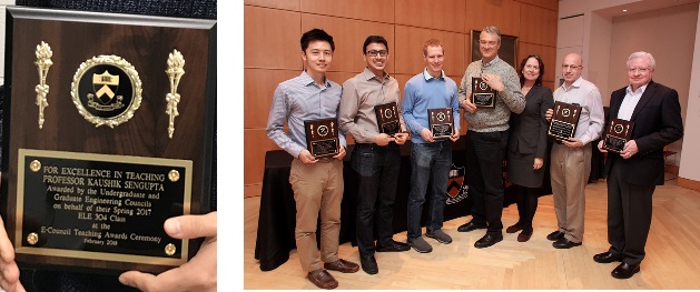 Mar. 2018. Dr. Sengupta awarded the prestigious E-council Teaching Award, nominated by the Undergraduate and Graduate Student Council. The award is given to only four Faculty members out of six engineering departments every semester.