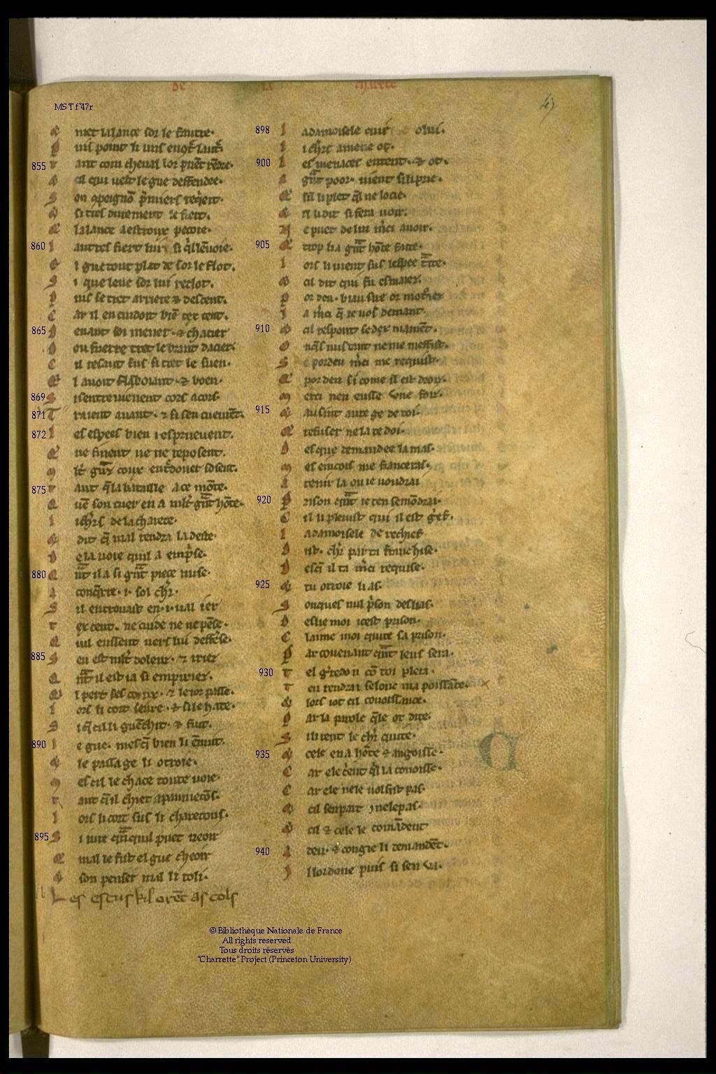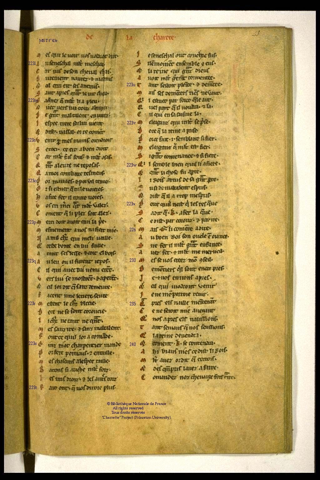 - MS T = Paris, Bibliothèque Nationale de France, f. fr. 12560