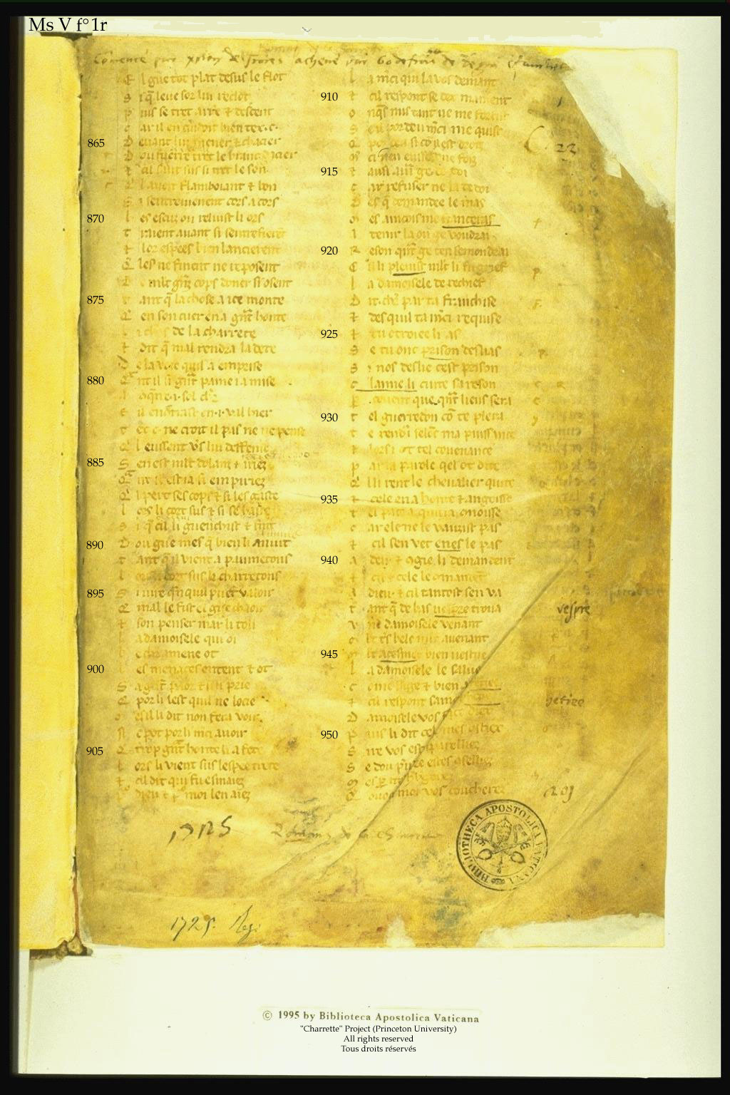 - MS V = Vatican, Biblioteca Vaticana, Regina 1725