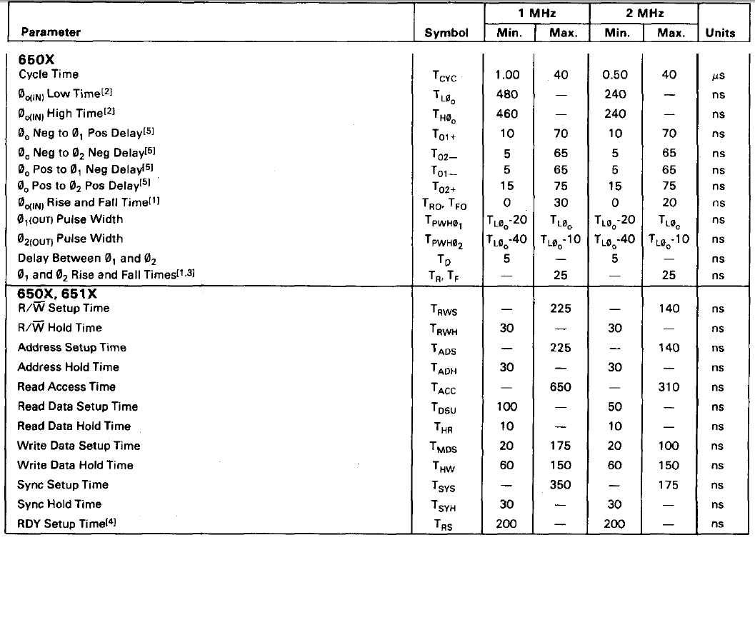 XII 6502 Microprocessor Timing - Diagram, Data Table